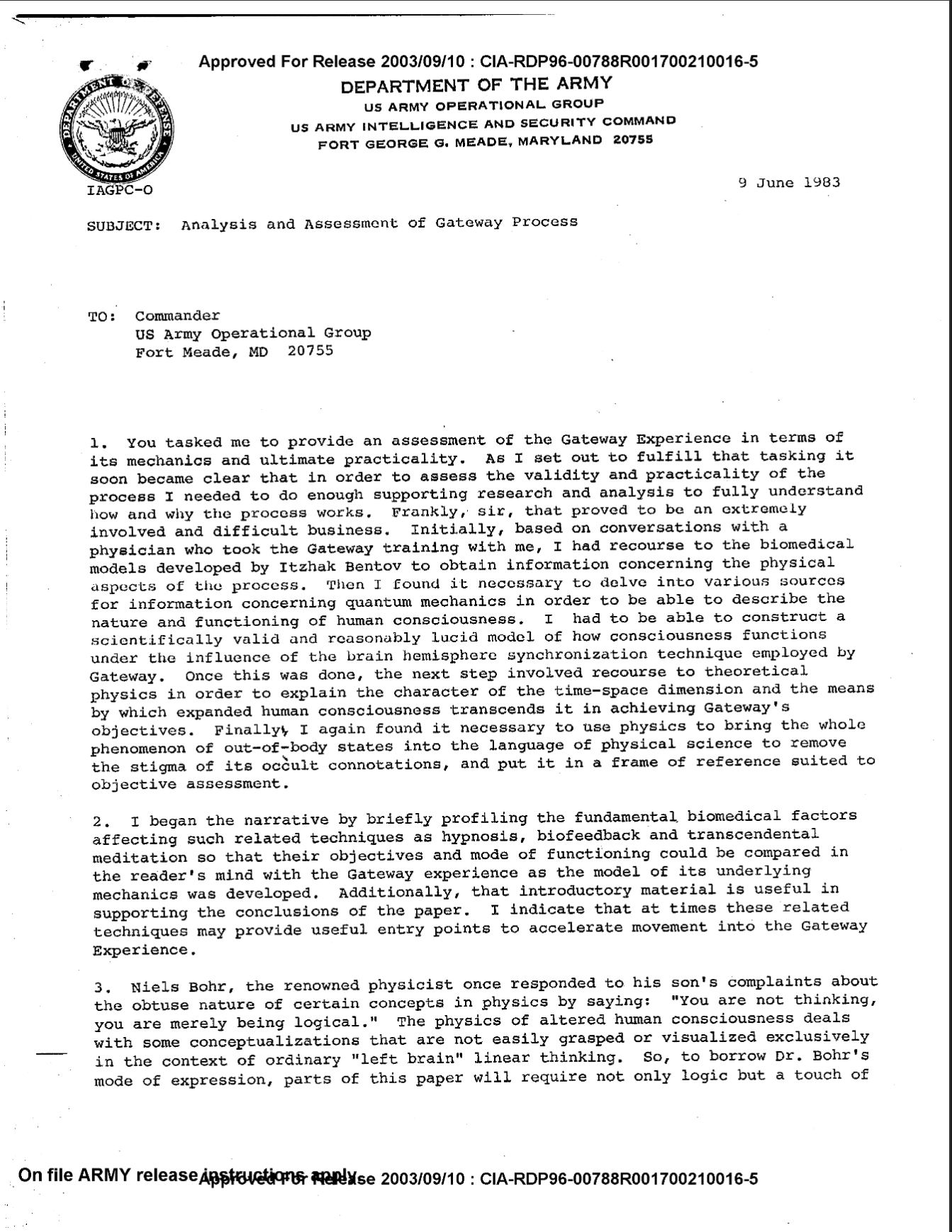Analysis and Assessment of Gateway Process is an apparently declassified CIA report on a set of meditative and visualization practices that can unlock esoteric powers.